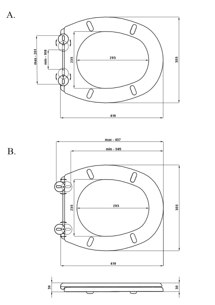 | Antibacterial | PP – Toilet seats – NO, PP – Toilet seats – YES (option) |